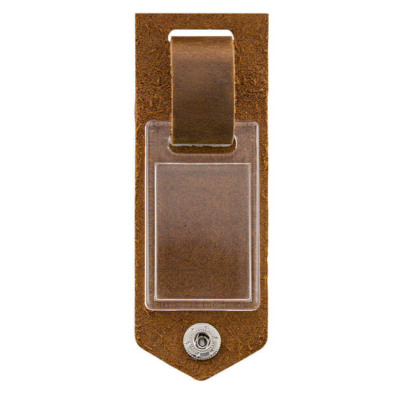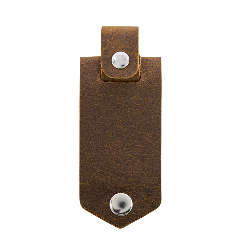 Nahkaisen avaimenperän mitat: 82 mm x 36 mm